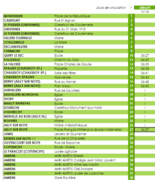 LIGNE 741: service 741135 ne sera pas effectué ce lundi 18 mars 2024